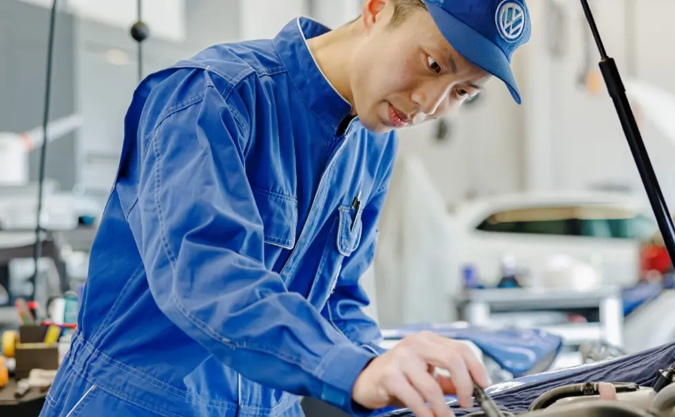Volkswagen、Audiにはテクニカルマイスターという資格があります。今一番の目標はマイスター取得です。私の職場には尊敬できる先輩が多くいます。その中で特にチーフメカニックの先輩にとても憧れているため、少しでも早く追い越せるよう高い目標をもって日々努力しています。